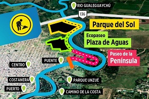 Este Ecopaseo será la cuarta costanera de la ciudad y también se crearán unos 900 metros de playa pública sobre el río Gualeguaychú.
