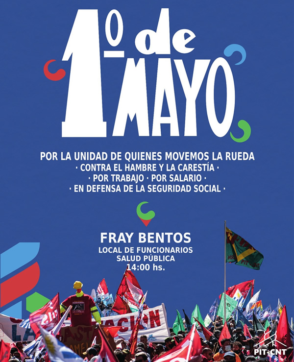 Bajo la consigna “Por la unidad de quienes movemos la rueda”, el Plenario Intersindical de Río Negro organiza el acto del Día Internacional de los Trabajadores.