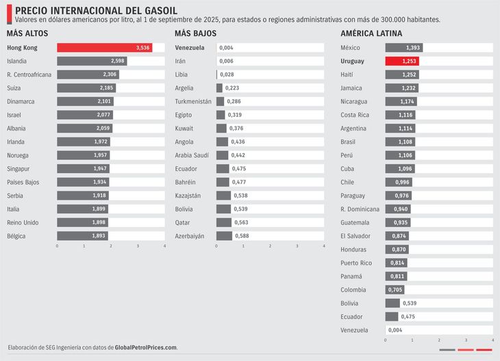 La cuestionada suba del combustible generó que el país quede sólo por debajo de México en la comparación del gasoil con el resto de América Latina.